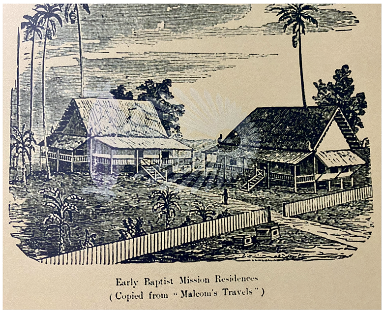 Above picture: A sketch of the simple residences the Missionaries inhabited (1830s-50)